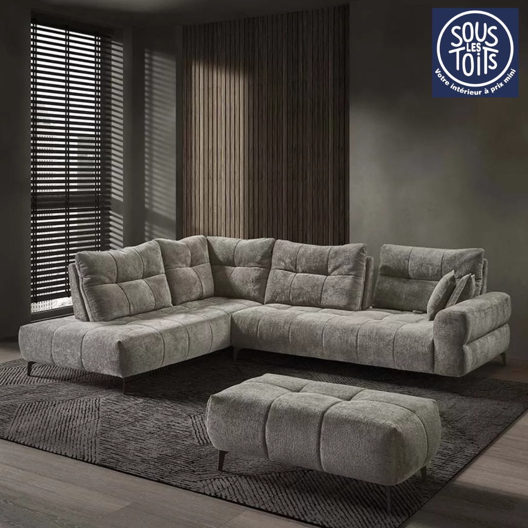 Enfin, le canapé Melania s’adapte à tous les intérieurs grâce à ses nombreuses possibilités de personnalisation. Il existe en différentes configurations, ainsi qu’en plusieurs matières et coloris, permettant de créer un modèle unique, en parfaite harmonie avec votre décoration. Par conséquent, il représente un choix idéal pour ceux qui recherchent à la fois style, confort et modularité.