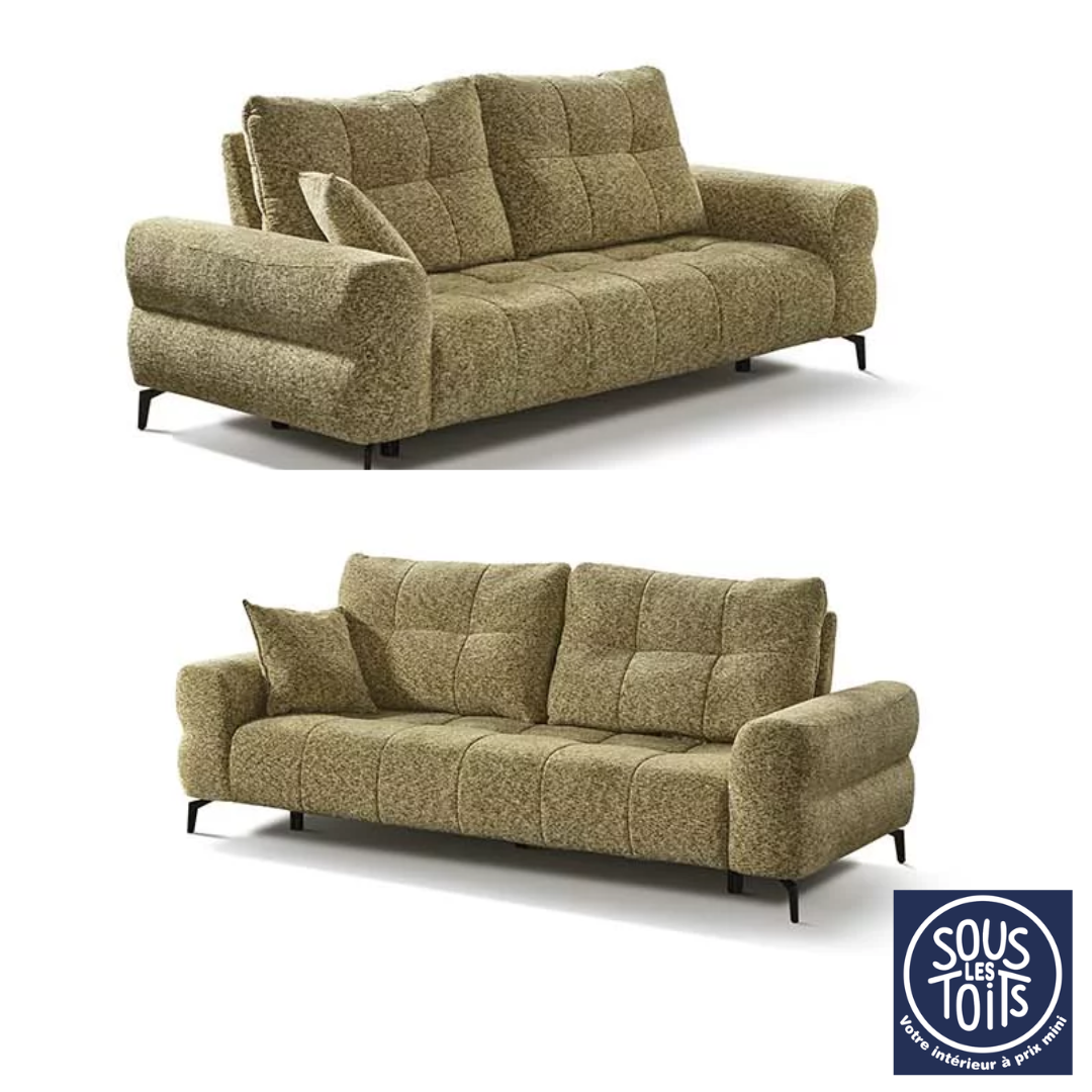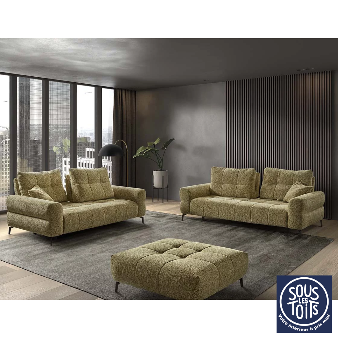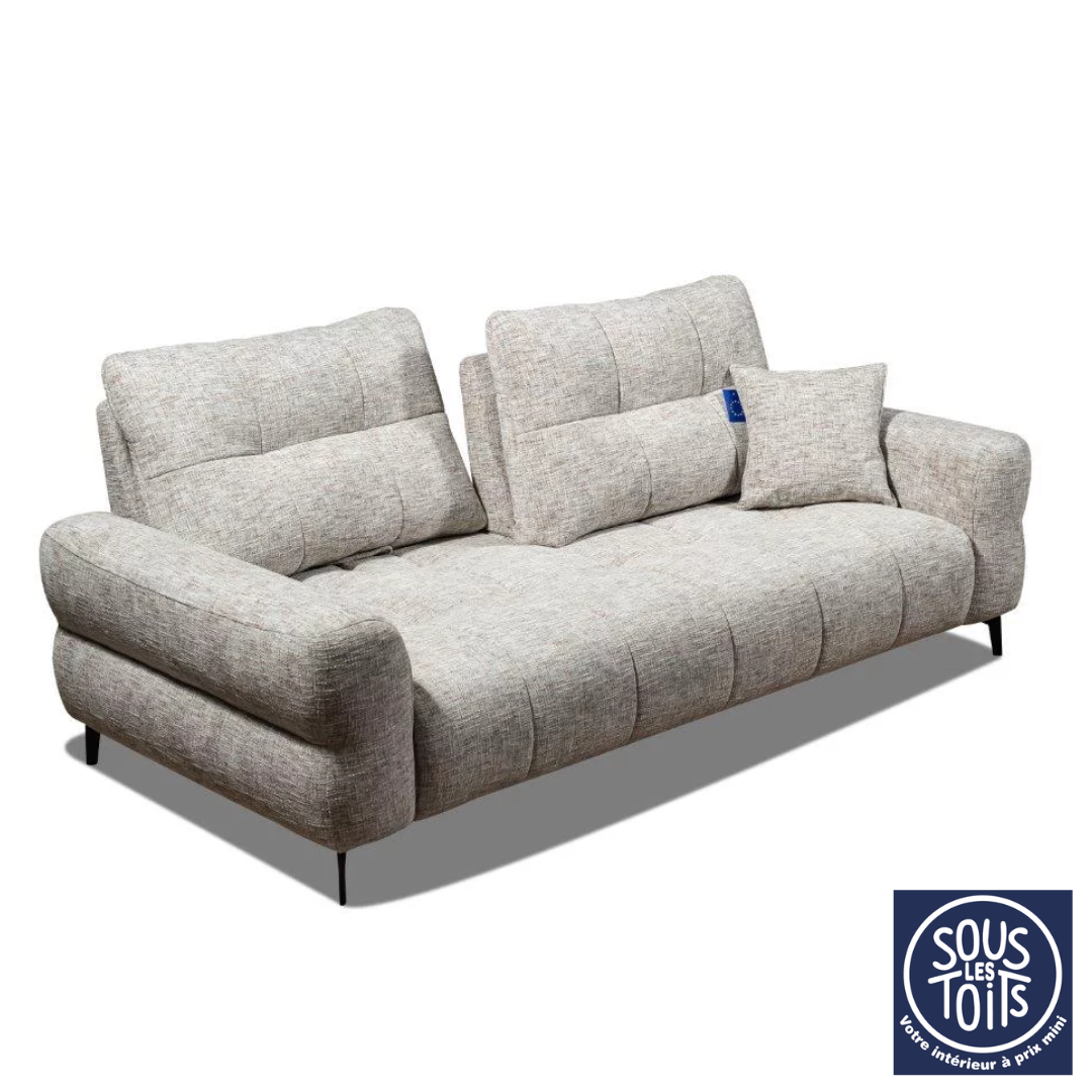 Par ailleurs, ce canapé se démarque particulièrement grâce à son système de dossiers avance-recul. Ainsi, il permet d’ajuster la profondeur d’assise selon les envies et les besoins, offrant tantôt une position droite pour discuter, tantôt une position plus allongée pour se relaxer. En outre, cette fonctionnalité apporte une grande flexibilité d’utilisation, rendant le canapé aussi pratique que confortable au quotidien.