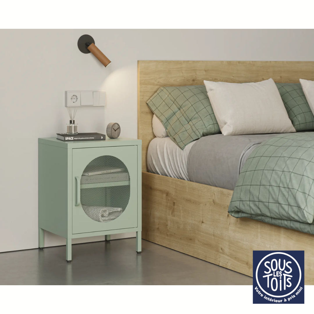 Chevet / bout de canapé vert d’eau Métalic