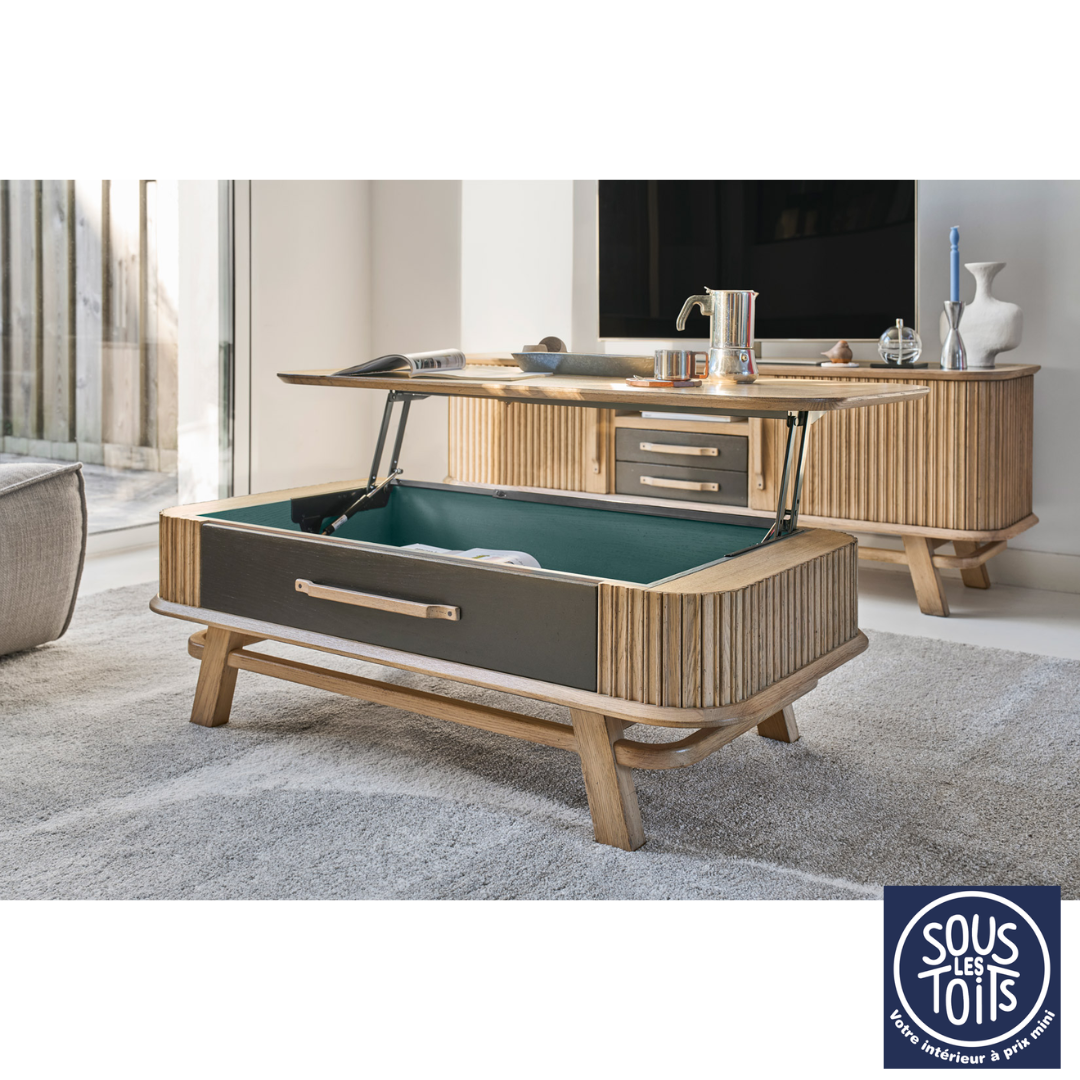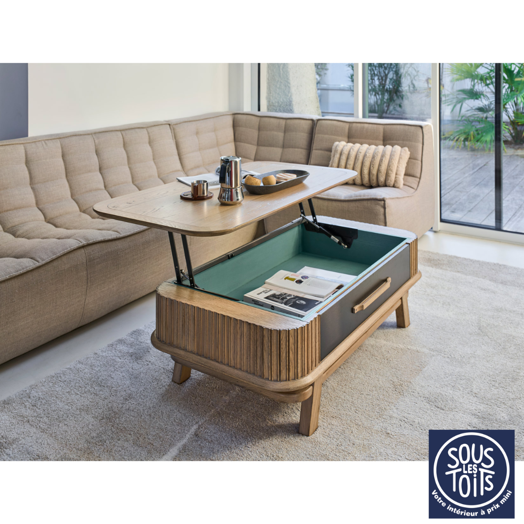 En outre, cette table basse offre un vrai gain de confort. Son mécanisme reste simple et fluide. Elle permet aussi d’optimiser l’espace dans le salon. Par conséquent, elle convient parfaitement aux espaces de vie actuels.