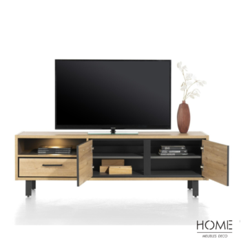 Meuble TV Brooks 2 portes bois – 1 Tiroir béton – 1 Niche Couture