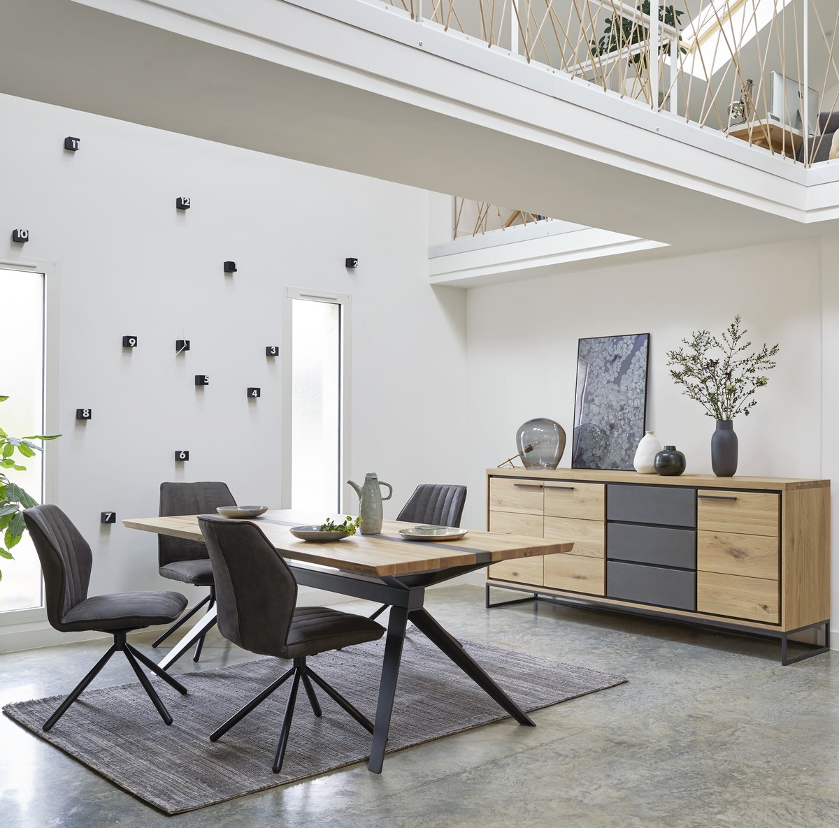Enfilade Brooks 4 Portes bois et béton – 1 tiroir béton Couture
