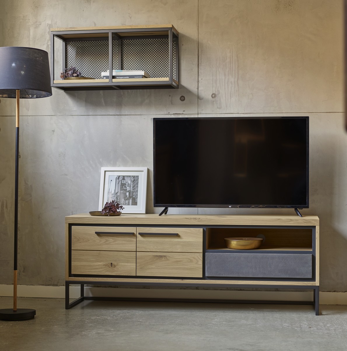 Meuble TV Brooks 2 portes bois – 1 Tiroir béton – 1 Niche Couture